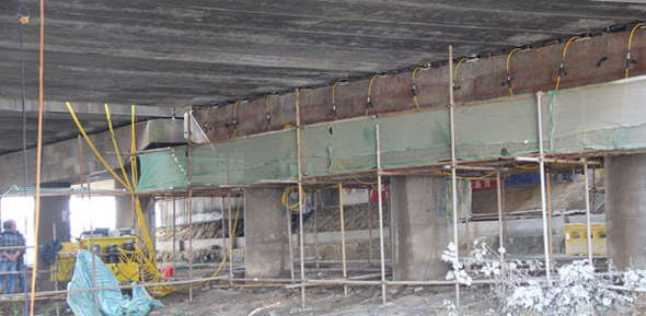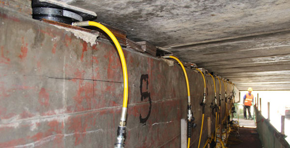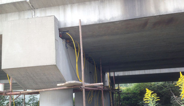 江廣高速公路改造工程JG-GG-2標(biāo)許莊周梓中溝中橋,采用同步千斤頂104臺將原有橋梁抬高50mm及舊支座進(jìn)行更換,此項目為泰州市重點城建項目、國家高速主干道京滬高速江都至廣陵段(簡稱江廣高速)改擴(kuò)建工程, 此次工程將對該橋進(jìn)行拼寬拓孔,即在原有位置往東側(cè)增加4孔,加長86米。