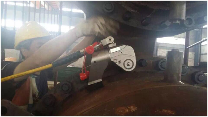 聚頂機(jī)械針對化工廠裝備公司的情況,派遣了有現(xiàn)場經(jīng)驗(yàn)的技術(shù)員前往查看,現(xiàn)場工況相對不是很復(fù)雜,標(biāo)配的液壓扳手就能解決,但也存在較為特殊的情況,如法蘭連接處不是平面,夾角不是垂直或者工作空間狹小等情況,聚頂機(jī)械公司從用戶的角度出發(fā),給出的解決方案不光滿足工作要求,還要為客戶節(jié)約成本,所以針對化工廠裝備公司常規(guī)以及特殊的現(xiàn)場情況聚頂機(jī)械公司采用一套液壓扳手就能解決全部問題的方案,得到客戶的高度認(rèn)可。由于現(xiàn)場工人不會使用液壓扳手,聚頂機(jī)械技術(shù)人員就手把手教操作人員,直到都能熟練操作為止,同時在現(xiàn)場工人的要求下,用液壓扳手裝配一套壓力容器,最后還要加水打壓檢測是否泄漏,一切都超出了工人們的預(yù)料,大家都說以后有了液壓扳手他們心里有底多了,以后就不再全部依賴“風(fēng)炮”了,技術(shù)主管人員也說使用液壓扳手后交付給客戶的產(chǎn)品,他們就放心了。