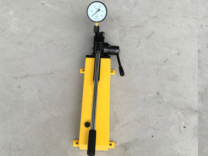 SYB系列手動(dòng)泵是由軸向柱塞泵、組臺(tái)閥、油箱等組成的一種小型液壓泵站。該系列手動(dòng)泵具有壓力高、體積小、操作方便等特點(diǎn),特別適用于野外電源條件下作業(yè)。該泵可作為耐壓試驗(yàn)泵用,當(dāng)配備油缸或?qū)S脵C(jī)具后可以進(jìn)行起重、彎曲、調(diào)直壓型、剪切、裝卸等作業(yè)。