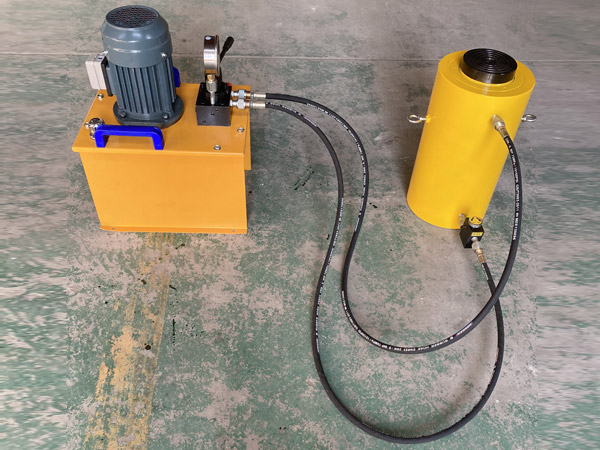 5、使用時(shí)先將手動(dòng)泵的快速接頭與頂對(duì)接,然后選好位置,將油泵上的放油螺釘旋緊,即可工作。將放油螺釘旋松,油缸卸荷。