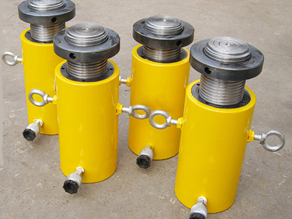 d)新的或久置的油壓千斤頂,因油缸內(nèi)存有較多空氣,開始使用時(shí),活塞桿可能出現(xiàn)微小的突跳現(xiàn)象,可將油壓千斤頂空載往復(fù)運(yùn)動(dòng)2-3次,以排除腔內(nèi)的空氣。長期閑置的千斤頂,由于密封件長期不工作而造成密封件的硬化,從而影響油壓千斤頂?shù)氖褂脡勖,所以油壓千斤頂在不用時(shí),每月要將油壓千斤頂空載往復(fù)運(yùn)動(dòng)2-3