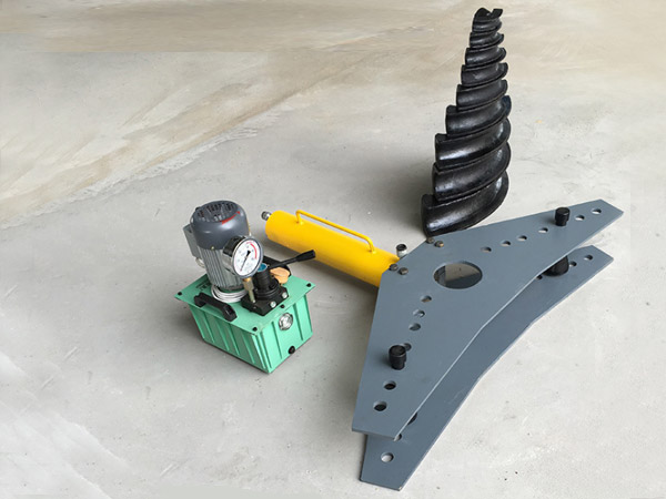 由電動(dòng)油泵(10),高壓油管(12),快速接頭(13),工作油缸(8),柱塞(7),彎管部件[包括上花板(3),下花板(14),模頭(4),輥軸(2)]組成。由電動(dòng)油泵輸出的高壓油,經(jīng)高壓油管送入工作油缸內(nèi),高壓油推動(dòng)工作油缸內(nèi)柱塞,產(chǎn)生推力,通過彎管部件彎曲管子 。