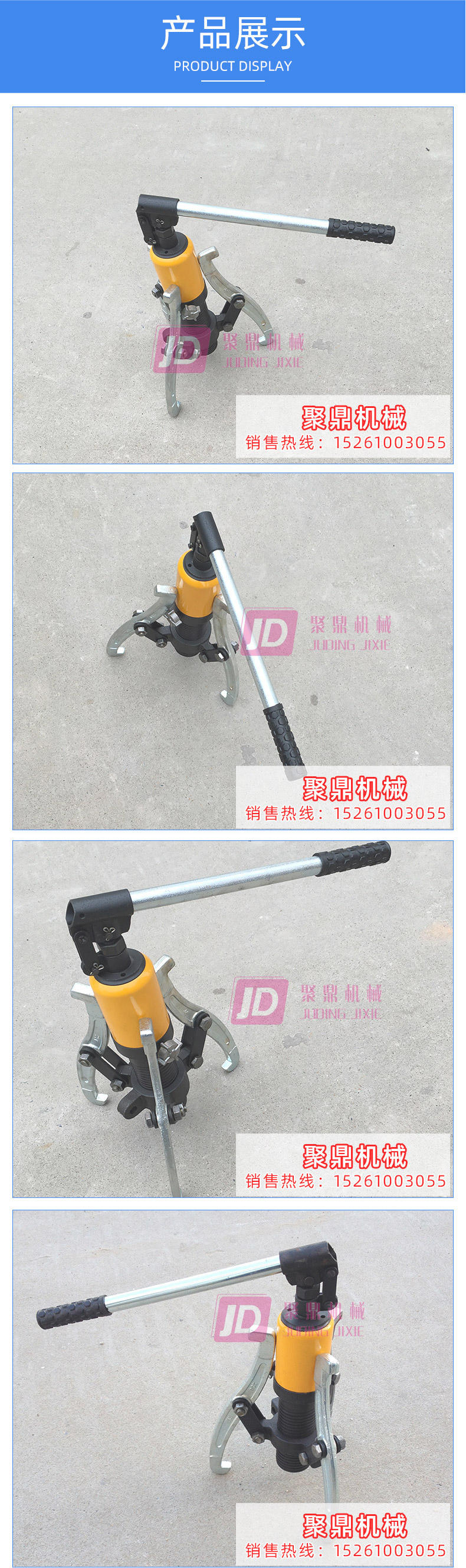 液壓拉馬是以液壓起動(dòng)桿直接前進(jìn)移動(dòng),故推動(dòng)桿本身不作轉(zhuǎn)動(dòng)。鉤爪座又可隨螺紋直接作前進(jìn)后退之調(diào)距,操作時(shí)只要把手前后小幅度擺動(dòng),油壓起動(dòng)桿前移,鉤爪相對(duì)應(yīng)后退,把被拉物體拉出。